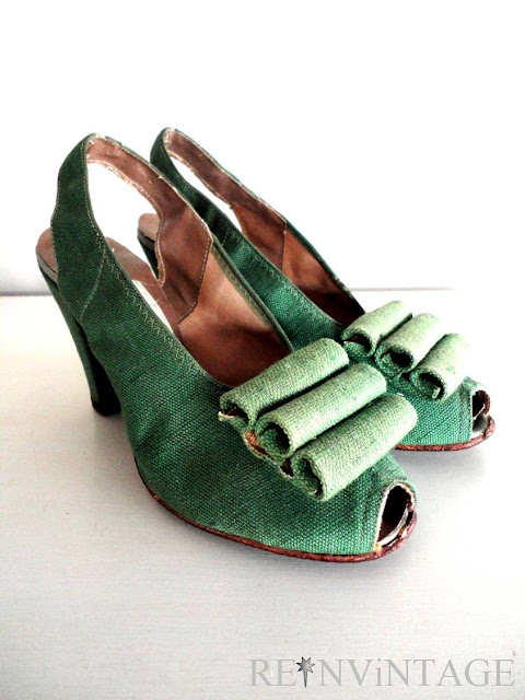 | Vintage Lettuce Wrap 1940s Green Heels from REiNViNTAGE |